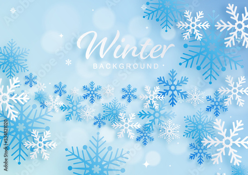 Snowflakes design for winter with snowflakes paper cut style on color background