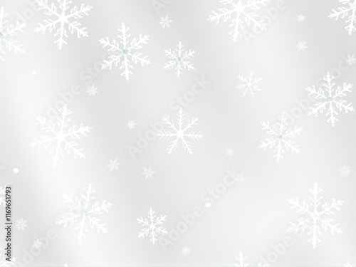 Snowflakes gently falling against a light background create a serene winter atmosphere perfect for holiday decorations and seasonal festivities
