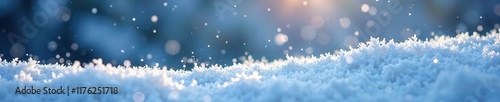 Snowflakes gently falling on a blanket of freshly fallen snow, frosty, intricate
