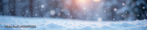 Snowflakes gently falling on a quiet winter landscape, soft colors, winter landscape