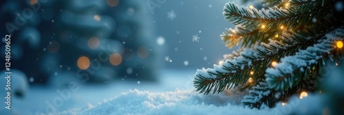 Snowflakes gently falling on the Christmas tree, snow, background, frosty