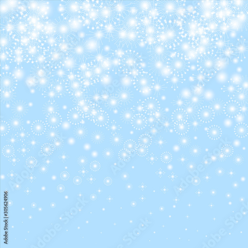 Snowflakes isolated. Flying snow flakes and stars on ligth blue background.