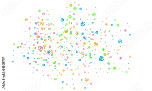 Snowflakes of different sizes and different transparency are randomly scattered over a transparent background. Winter png background, pattern, design.