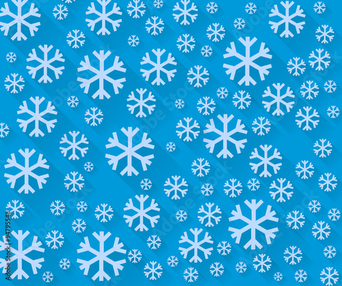 Snowflakes on a blue background. Winter background. Vector illustration in a flat style with long shadows.