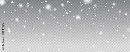 snowflakes on a transparent background. Christmas and New Year decoration. Snow flakes, snow background.