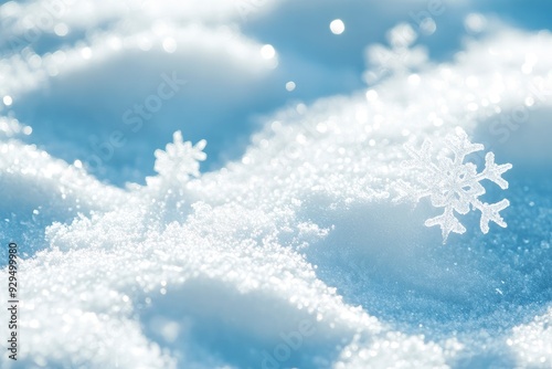Snowflakes On Snow - Christmas And Winter Background - Natural Snowdrift Close Up With Abstract Light , ai