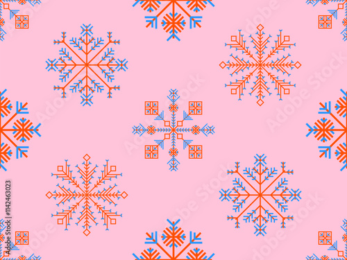 Snowflakes seamless pattern. Winter background with geometric snowflakes of different shapes. Christmas and New Year design for wrapper, banner and poster. Vector illustration