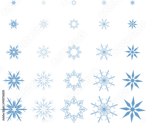 Snowflakes set vector, winter decor elements for Christmas and New Year seasonal design