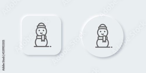 Snowman line icon in neomorphic design style. Winter holiday signs vector illustration.