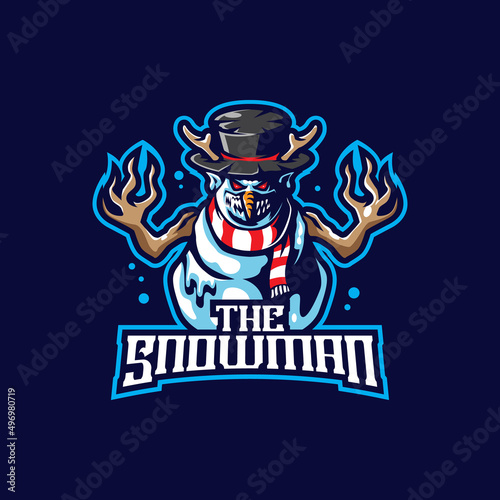 Snowman mascot logo design vector with modern illustration concept style for badge, emblem and t shirt printing. Angry snowman illustration for sport and esport team.