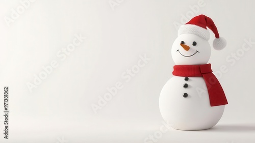 Snowman, wearing a Santa hat and scarf, 3D illustration, copy space for text,