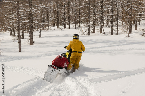 snowmobile in winter mountains