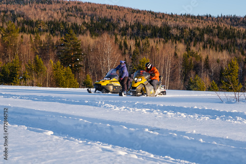 Snowmobile ride in the mountains of the Southern Urals