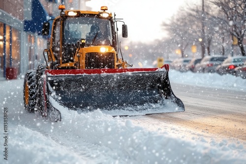 Snowplow Clearing Snowy Street Winter Storm Municipal Transport Cleaning City