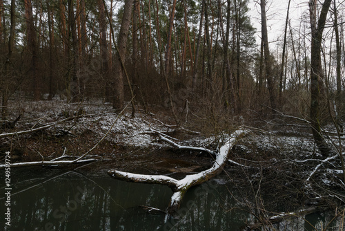 Snowy forest river