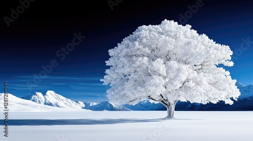 Snowy landscape Frost-covered tree in winter mountains