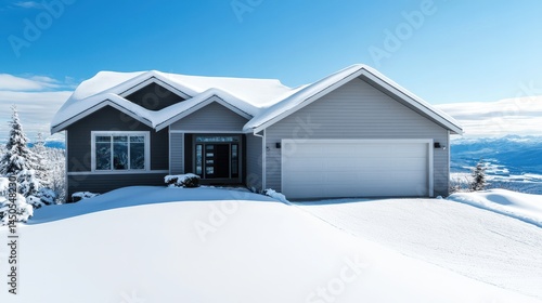 Snowy mountain home with a light gray facade.