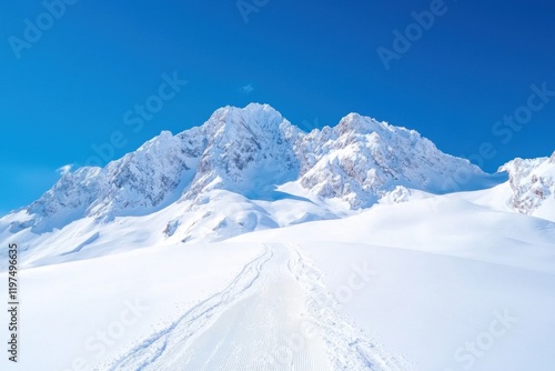 Snowy Mountain Landscape with Clear Blue Sky and Footprints