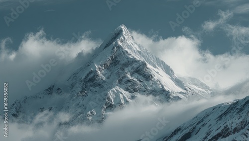Snowy mountain peak piercing through clouds
