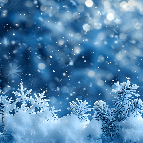 Snowy Pine Branches and Frosted Snowflakes with Falling Snow