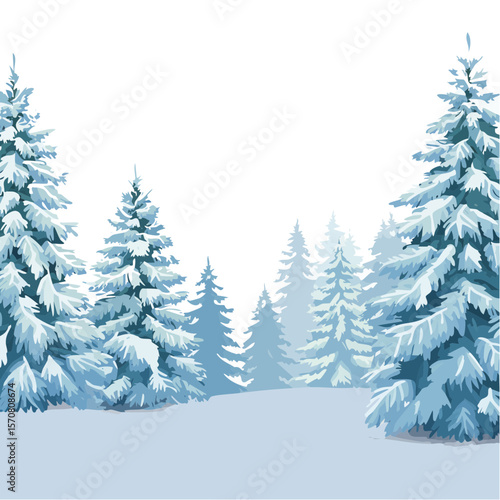 Snowy Winter Forest Landscape with Pine Trees and Fresh Snowfall