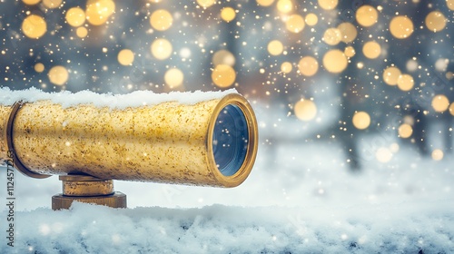 Snowy Winter Landscape Viewed Through Brass Telescope
