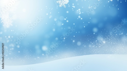Snowy winter landscape with blurred background and falling snowflakes