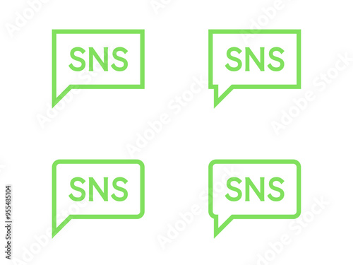 ミニマルなSNS吹き出しロゴセット:黄緑線