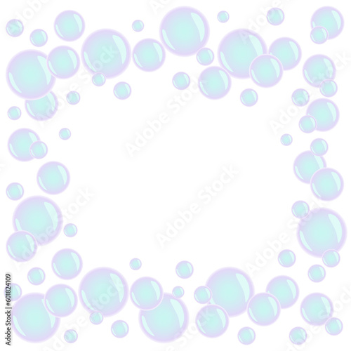 Soap bubble frame in neon colors on a white background with copy space, vector
