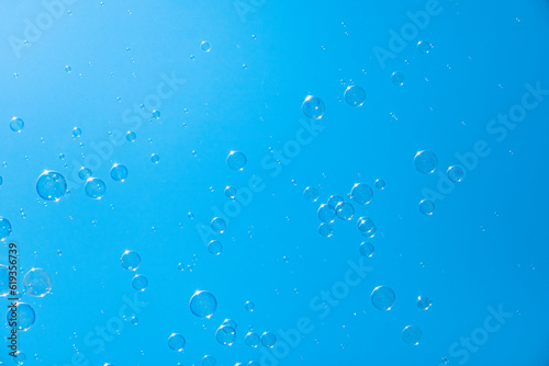 Soap bubbles in the blue sky. Beautifully iridescent balls of soap foam in the air