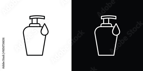 Soap Dispenser Icon in Line Art with White and Black Backgrounds