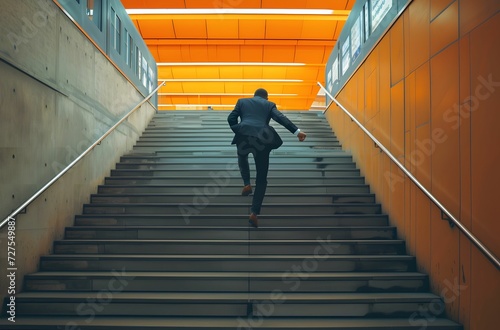 Soaring to Success - Businessman Leaping Up the Stairs with Confidence