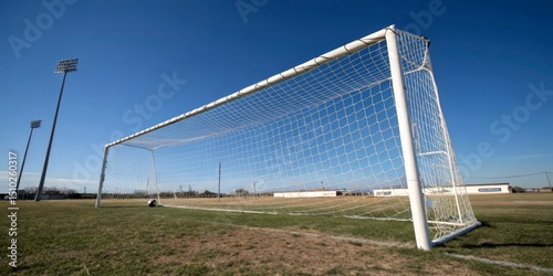 Soccer goal on a clear day at a community sports field during afternoon practice session
