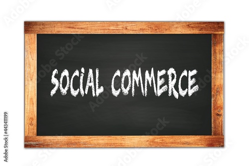 SOCIAL COMMERCE text written on wooden frame school blackboard.