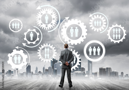 Social connection concept drawn on screen as symbol for teamwork and cooperation