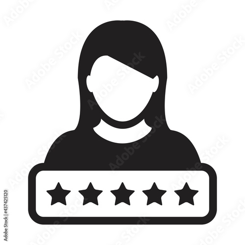 Social credit core icon 5 star rating vector female user person profile avatar symbol for in a glyph pictogram illustration