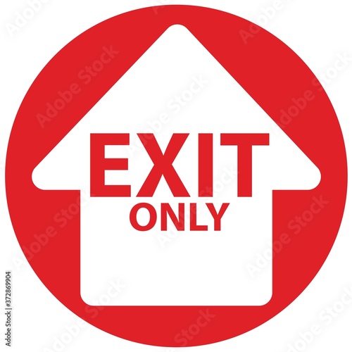 Social distancing concept for preventing coronavirus covid-19 with wording exit only in red on white arrow in red circle background