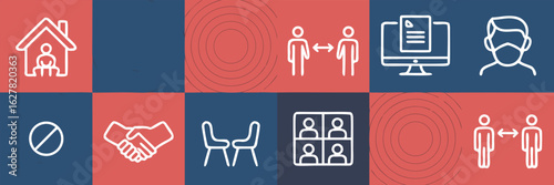 Social Distancing, Isolation, and Remote Work Iconography on Red and Blue Backgrounds Presentation