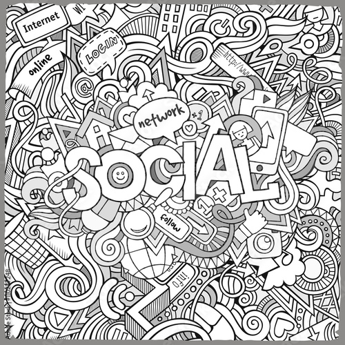 Social hand lettering and doodles elements background