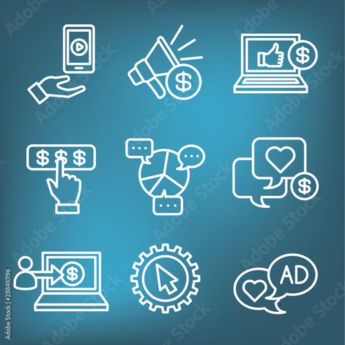 Social Media Ads Icon Set with video ads, user engagement, etc