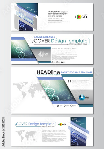 Social media and email headers set, modern banner templates. Cover design template, easy editable flat layouts. DNA molecule structure, science background. Scientific research, medical technology.