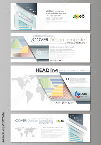 Social media and email headers set, modern banners. Easy editable abstract template, vector layouts in popular sizes. Minimalistic design with lines, geometric shapes forming beautiful background.