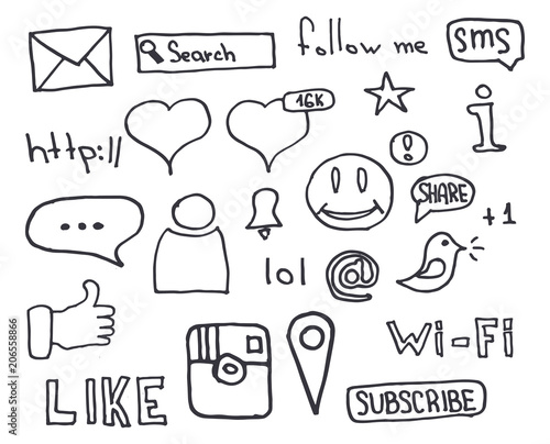 Social Media banners with hand draw doodle background. Vector illustration