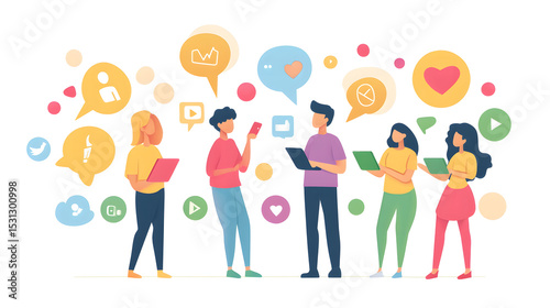 Social Media Engagement: People Interacting with Posts, Likes, and Shares captures the vibrant energy of online connection and digital influence. Featuring users reacting with emojis, leaving comments