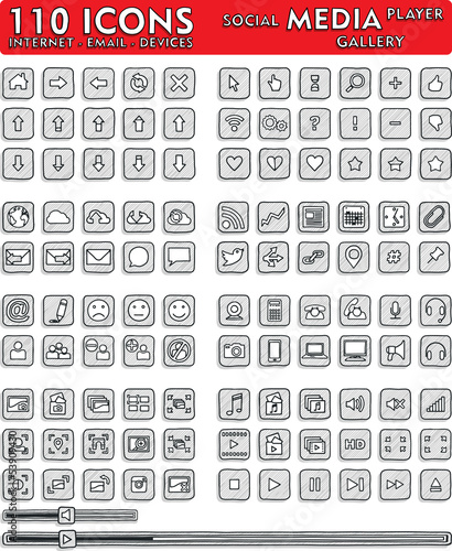 Social Media Hand-Drawn Icons - 110 Icons Set