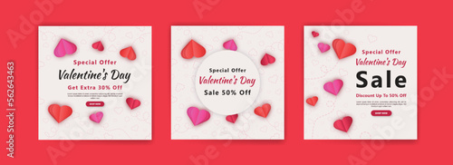 Social media post for valentine's day sale marketing. Vector design with the theme of love and affection.