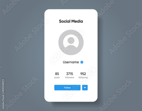 Social media preview page template. Internet profile information page. Follow button. Social media photo mockup, template.