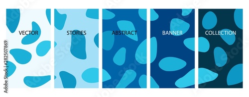 Social media stories banners set, story, texture with abstract blue stones, templates for cover, flyier, brochure, vector trendy backgrounds collection.