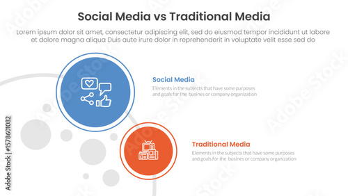 social media vs traditional media comparison concept for infographic template banner with big and small circle on left column with two point list information