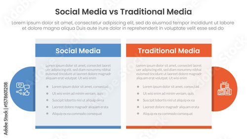 social media vs traditional media comparison concept for infographic template banner with table box and circle accessories with two point list information